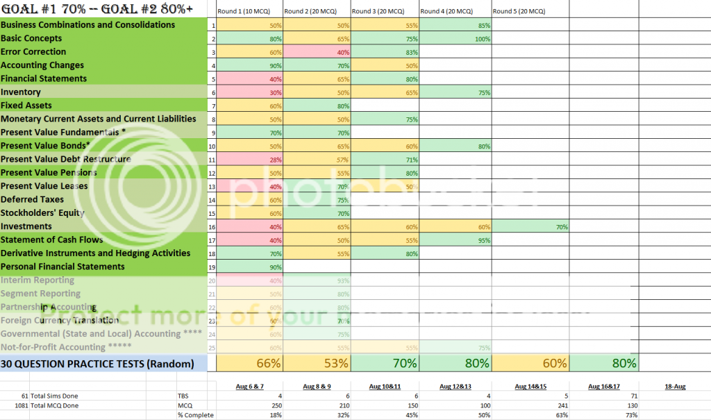 around July 30 I decided to blow through the last 10 sections of Gleim, not do the sims or mcqs, and just started hitting the Wiley TB on August 6, so it feels like I've only REALLY been studying for 2 weeks lol, I wish I had banged out all the videos way earlier and just studied like I have been. I've been on it 10-14 hours a day, 7 days a week, for these two weeks, except the 4 hours that I work haha